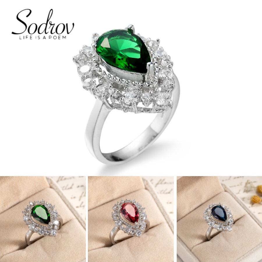 送料無料 SODROV 赤青と緑のクリスタルジルコンリング女性アイテムウェディングパーティーブライダル婚約ジュエリー レッド ブルー 指輪 グリーン AE00870029768354025