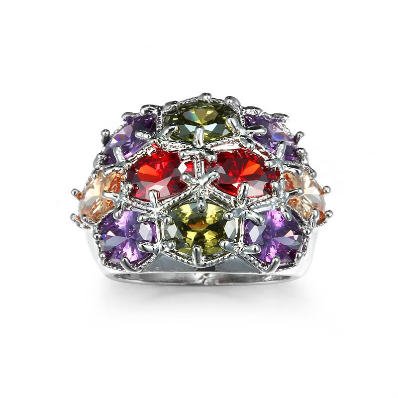 送料無料 SODROV 高級レインボージュエリーカラフルなクリスタルジルコンリング女性の結婚式婚約フラワーリング 指輪 フラワーデザイン AE00870053875021019