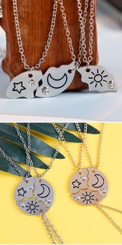 送料無料 3点セット 日月 スター ハンガー ネックレス チェーン 親友 Bff 友情 カップル チョーカー ジュエリー レース AE335356663611880494