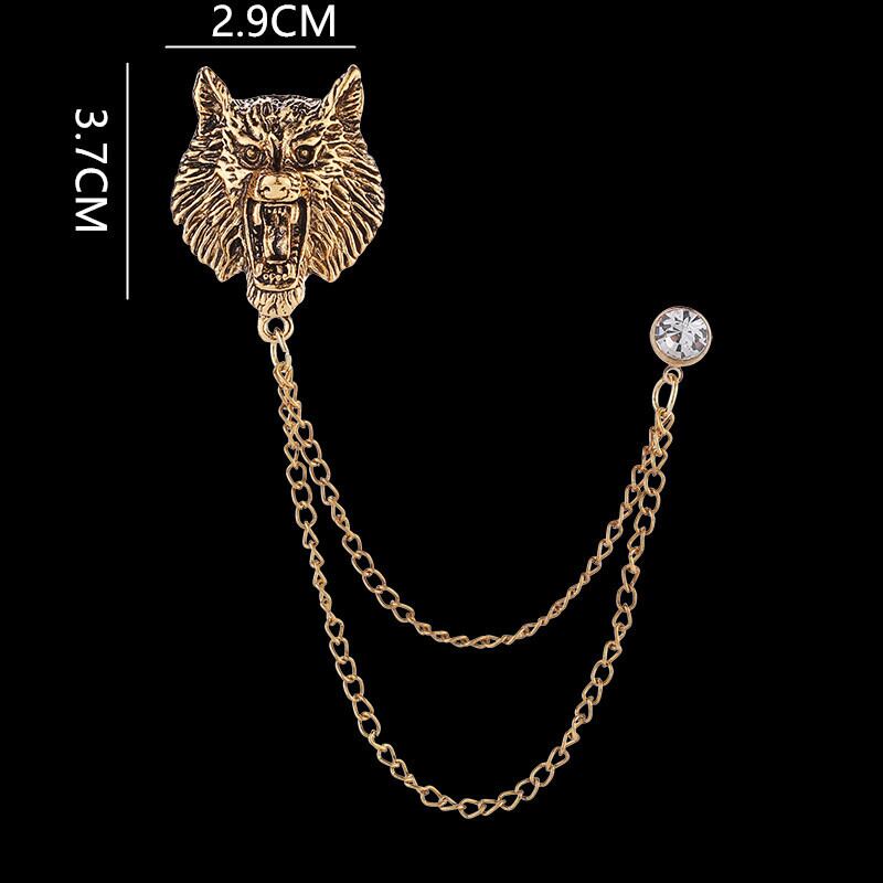 送料無料 高級ライオンズブローチ男性シャツの襟電話チェーンラペル動物ブローチピンパーティージュエリーアクセサリーギフト AE335356637463687082