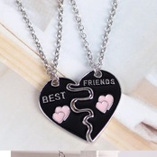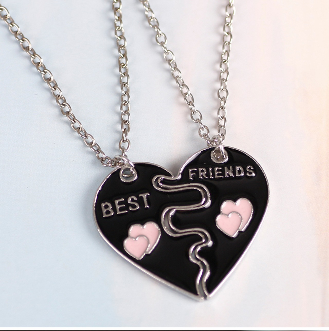 送料無料 ベストフレンド 2 点セット ネックレス ピンク ピーチ ハート ペンダント ネックレス Bff Friend 友情 誕生日 ギフト チョーカー チェーン レース AE335356668433529132