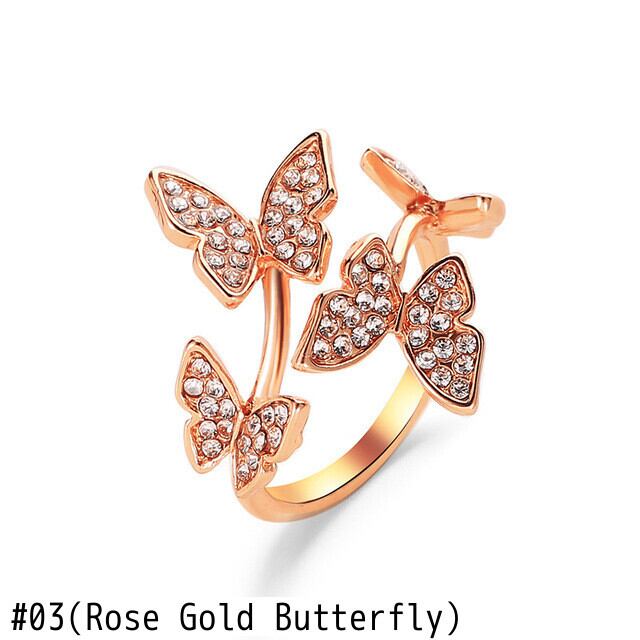 送料無料 かわいいラインストーン蝶リング女性調節可能な婚約リング昆虫自由奔放に生きるラインストーンクリスタルファインジュエリー 大人ガーリー スウィート キュート カジュアル アジャスタブル 指輪 AE33535669952093084