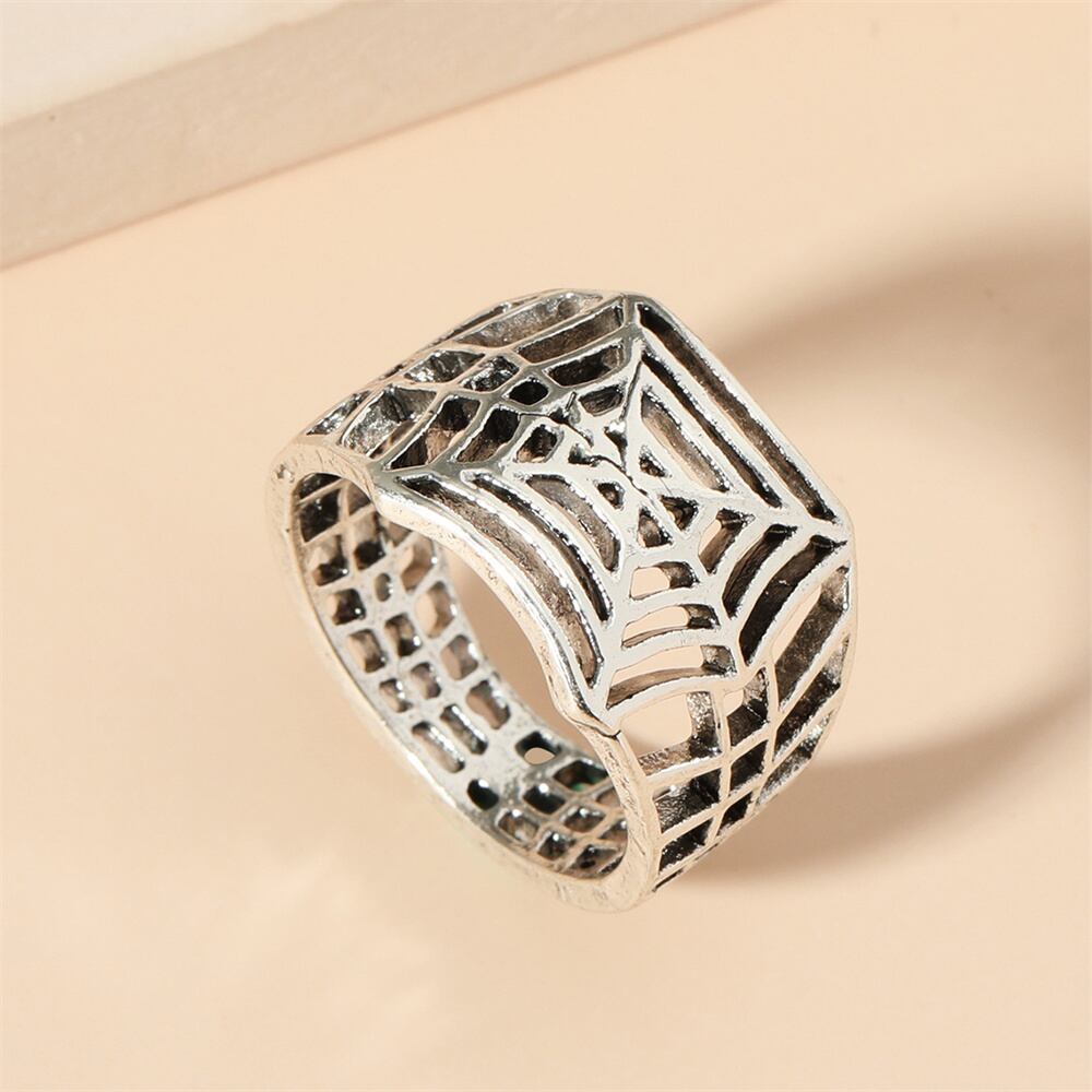 送料無料 レトロ蜘蛛の巣リング女性男性ゴシックパンク蜘蛛の巣チャーム調節可能な開口リングパーティージュエリーアクセサリーギフト アジャスタブル 指輪 AE335356675051686792