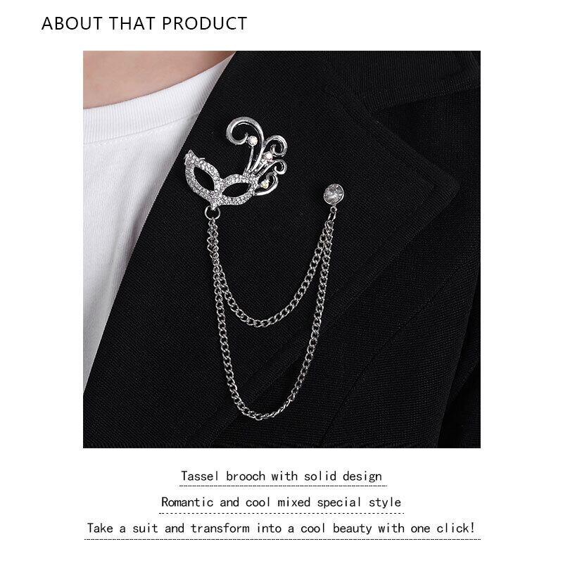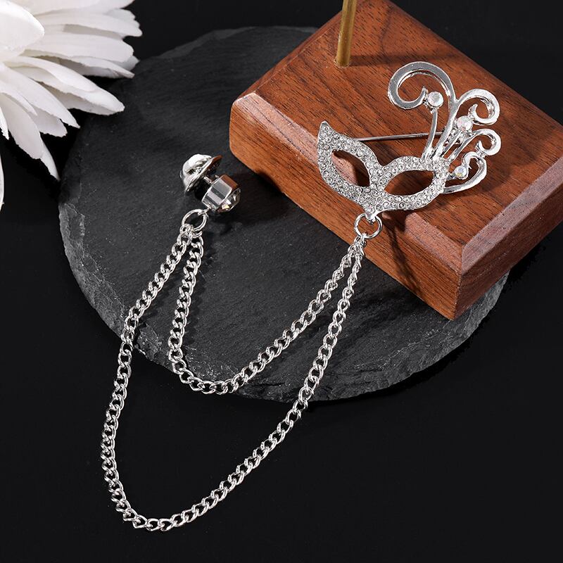 送料無料 メタルマスクラインストーンピンブローチフェザーシャツ襟電話チェーンフラワースーツラペルアクセサリーギフト フラワーデザイン AE335356646649731295