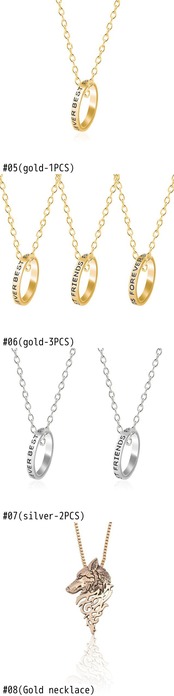 色:01(シルバーネックレス),02(シルバー-3PCS),03(ゴールド-2PCS),04(シルバー-1個),05(ゴールド-1個),06(ゴールド-3pcs),07(シルバー-2個),08(ゴールドネックレス),09(ゴールドハート),10(ローズゴールドハート),11(ボーンゴールド),12(ボーンシルバー),13(黒ネックレス),14(シルバーハート),15(イルカ),16(親友3個),17(黒人の友人),18(ホロウハート),19(親友2個),20(ベストフレンズ),21(ベストフレンズクリスタル),22(キーハート),23(パンダネックレス),24(ベストフレンズセット),25(今までのベストフレンズ),26(クリスタルゴールド親友),27(クリスタルシルバーbff),28(イルカペンダント),29(ピンbff),30(親友)