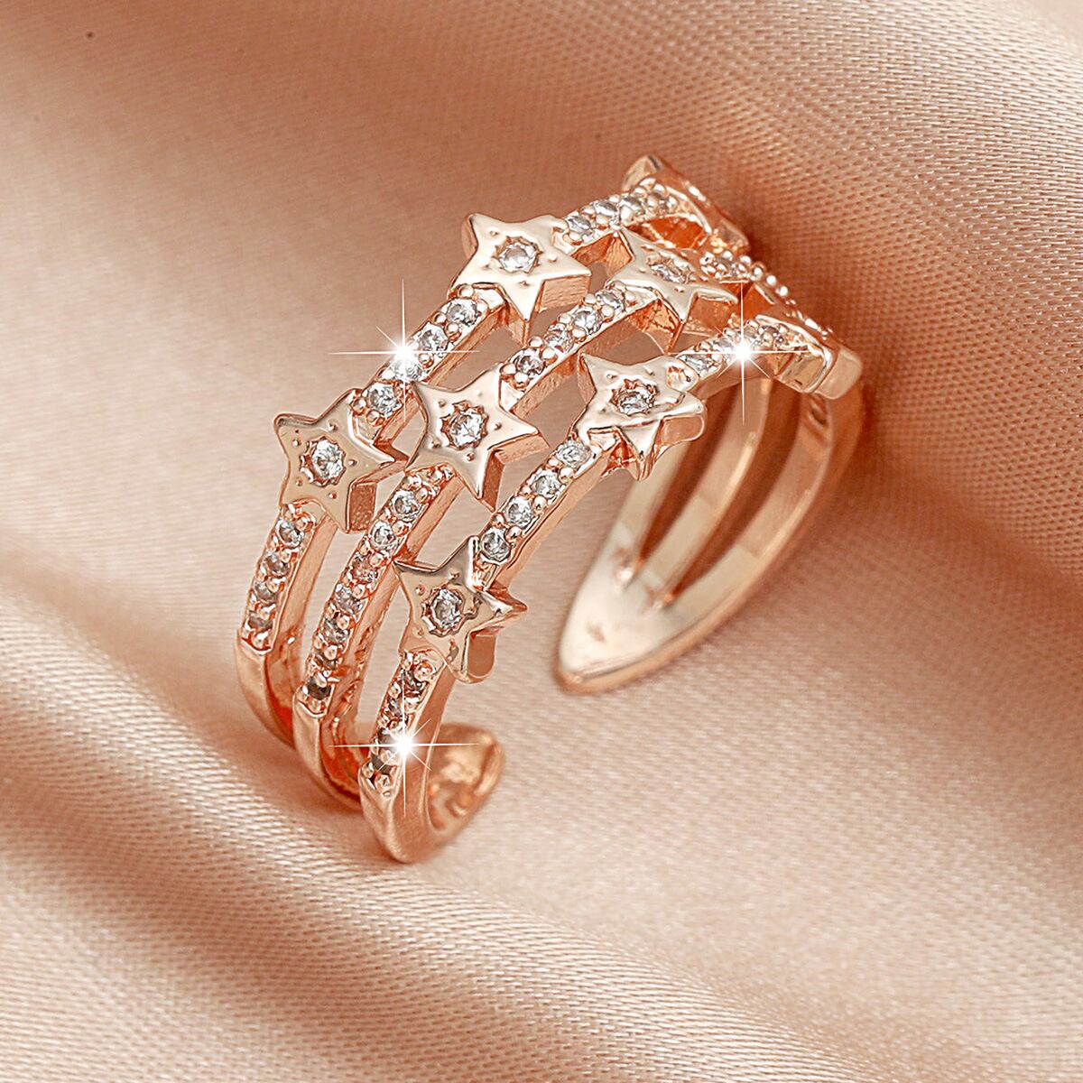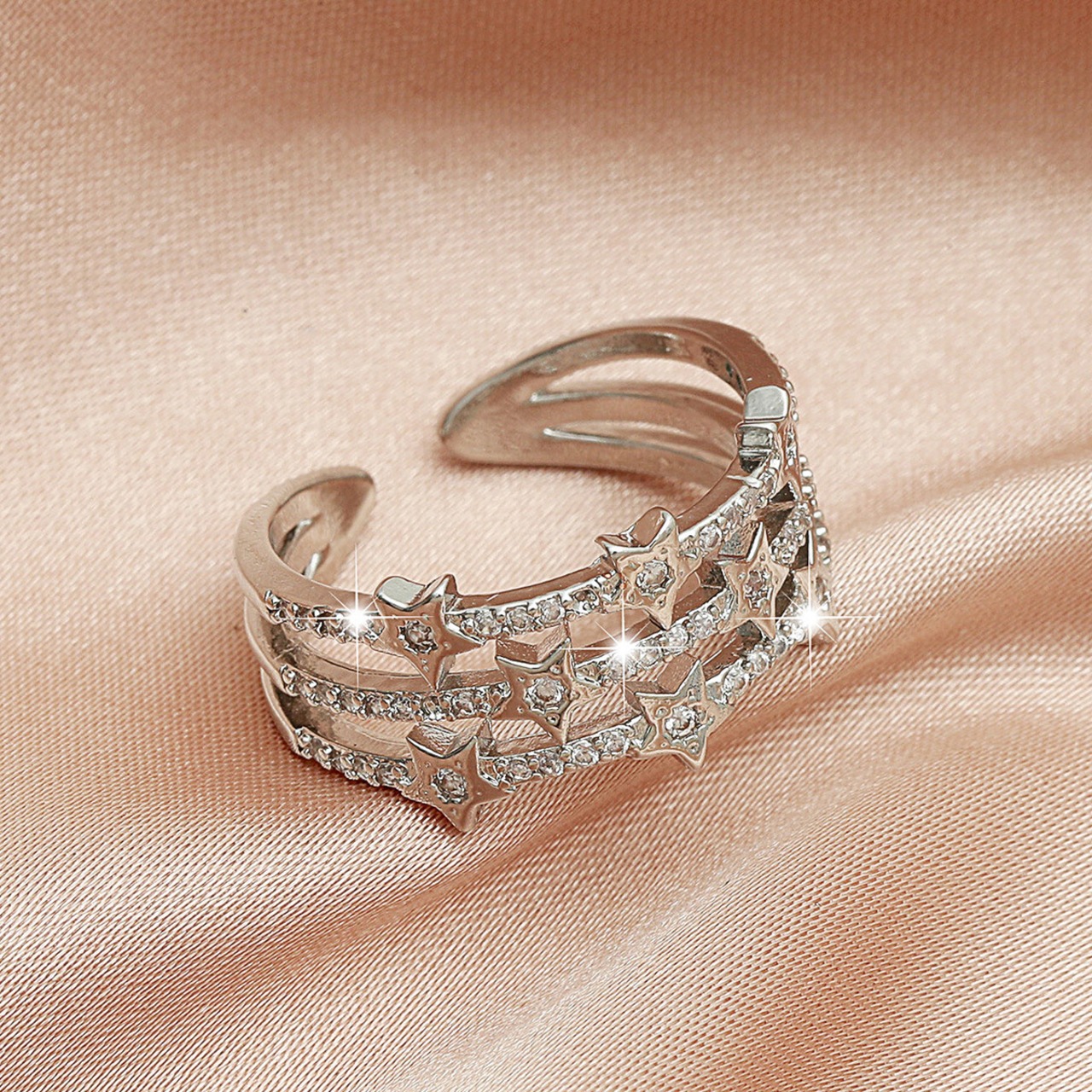 送料無料 繊細なスターラインストーンリング女性調節可能なリングシンプルなスターキュービックジルコニアクリスタルジュエリーアクセサリー アジャスタブル 指輪 風信子石 AE335356665464469066