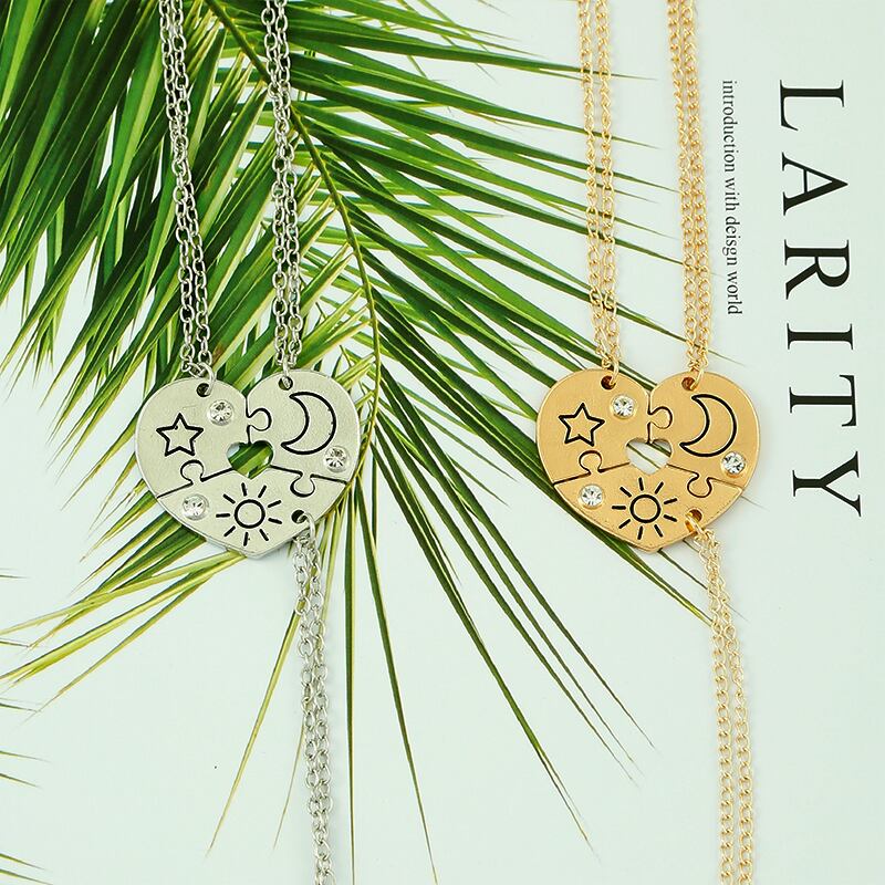 送料無料 3 個セット日月スターペンダントネックレス女性男性親友 BFF 友情カップルネックレスパーティージュエリーギフト レース AE335356685313782509