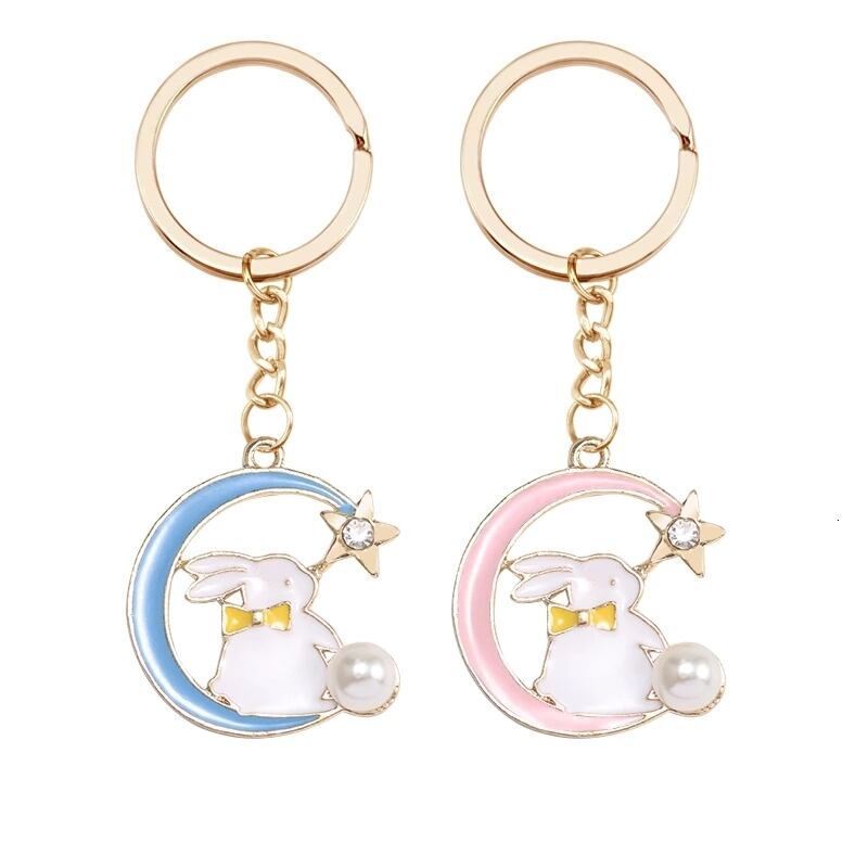 送料無料 金属キーチェーン車のキーホルダーウサギかわいいパールムーン五芒星ジュエリーアクセサリー 大人ガーリー スウィート キュート カジュアル 真珠 AE335356635741228292