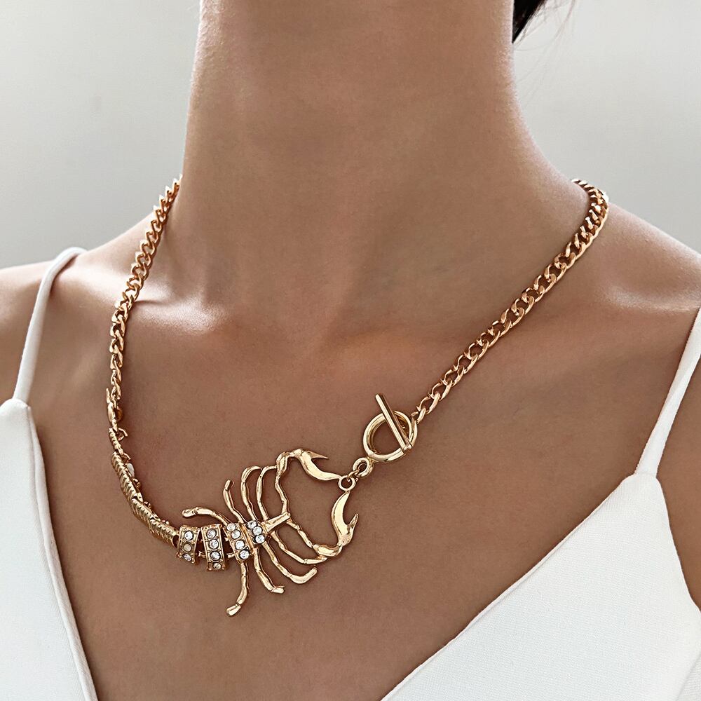 送料無料 パンクサソリネックレス女性ヴィンテージヒップポップラインストーンサソリペンダントチェーンチョーカーキュービックジルコニアファインジュエリー レース 風信子石 ビンテージ AE335356699071710242
