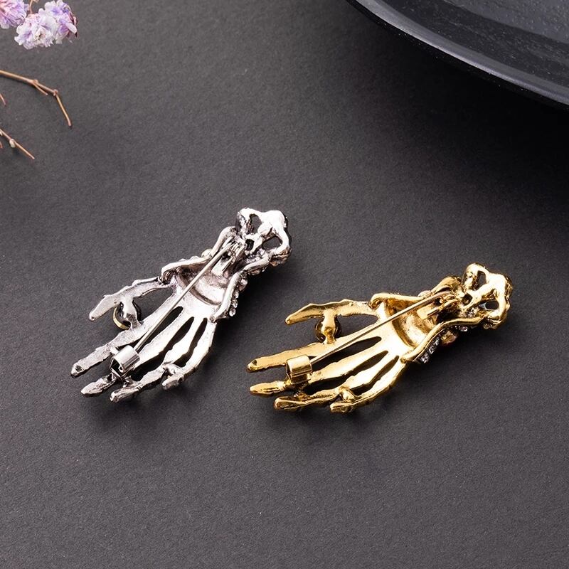 送料無料 2021 ゴシックメンズスカルハンド象嵌ラインストーンブローチサタンピンレトロ男性と女性の装飾ピンギフト AE335356654291979792