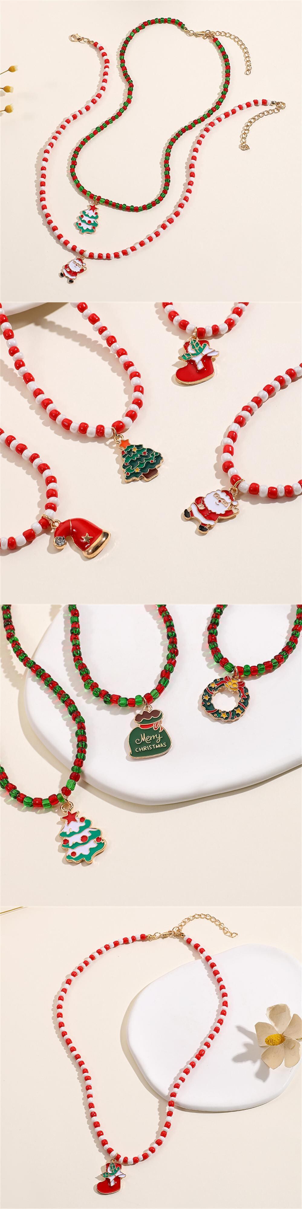 送料無料 高級クリスマスペンダントネックレス女性ビーズチェーンサンタクロースクリスマスツリーの鐘雪だるまパーティージュエリーアクセサリーギフト レース AE335356698667400042