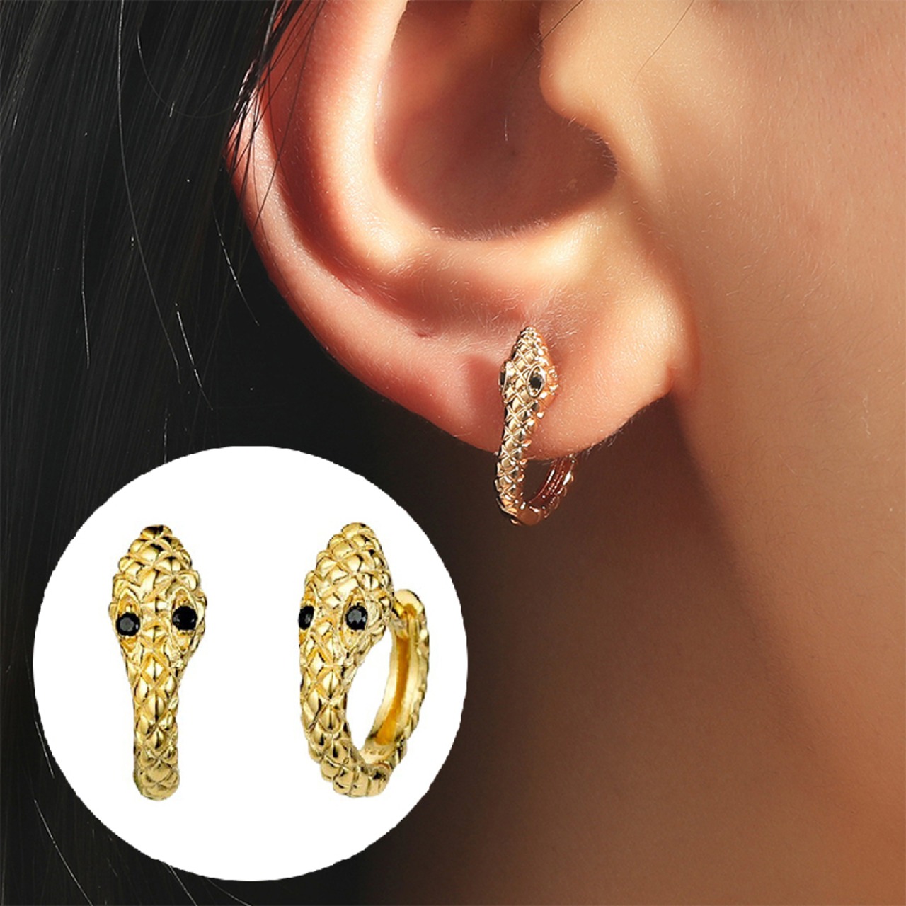 送料無料 高級黒目ヘビイヤリング女性クリスタルパンクヘビ動物形の耳のスタッドジュエリーアクセサリーバレンタインデーのギフト ブラック 指輪 AE335356634503082072