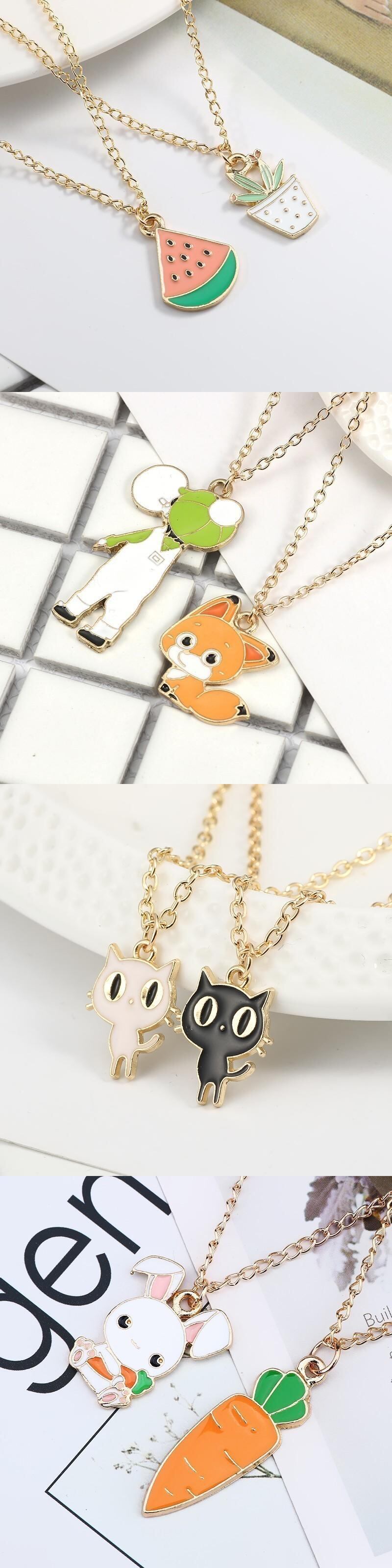 送料無料 漫画植物動物ネックレスペンダントエナメルマーメイドキツネ猫ウサギ惑星ハートネックレス女性ガールズキッズジュエリークリスマスギフト レース AE335356650592707055