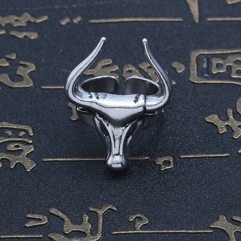 送料無料 ゴシックパンク雄牛ヘッドリング男性ヴィンテージスカルヘッドリングヒップホップ調節可能な動物バイカージュエリーバゲオム アジャスタブル 指輪 ビンテージ AE335356699887793516
