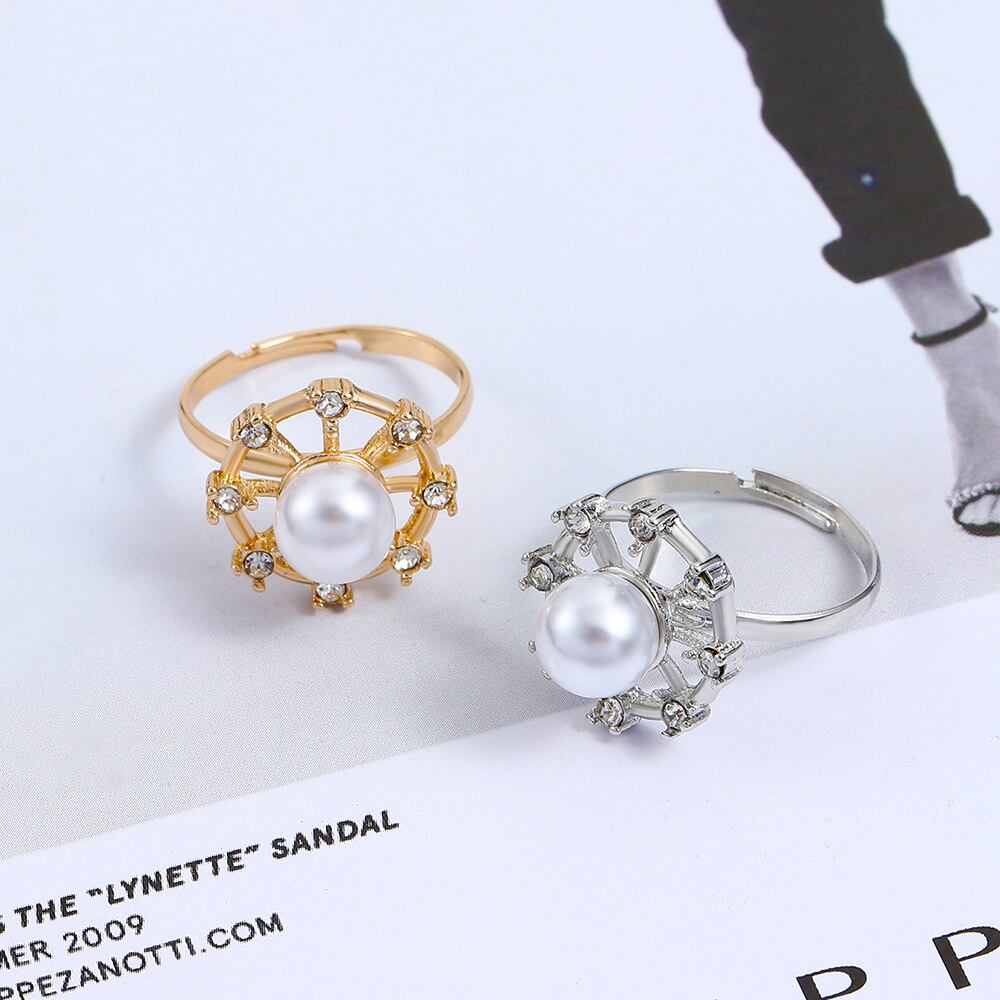 送料無料 繊細な中空花パールリング女性トレンディなデイジー象嵌ジルコン調節可能なリングパーティージュエリーアクセサリーギフト アジャスタブル 指輪 真珠 フラワーデザイン AE335356637738998385