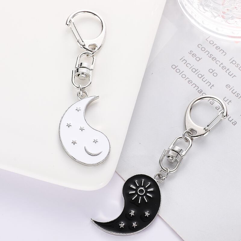送料無料 ホット陰と陽ステッチ日月合金 2 花びら魚座カップルペンダントキーホルダージュエリーアクセサリーギフト チェーン AE335356696525188696
