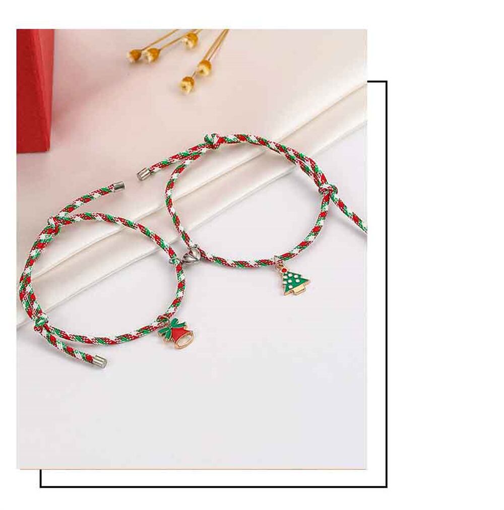 送料無料 2 ピース/セットトレンディなクリスマスブレスレット女性調節可能なカップルマッチングサンタクロースクリスマスツリーの鐘雪だるまジュエリーギフト アジャスタブル AE33535663901639050