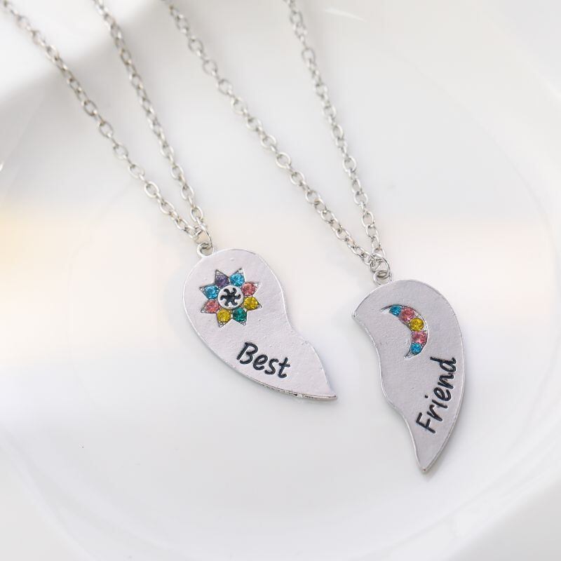 送料無料 絶妙な親友ペンダントネックレス女性調節可能なスタームーンクリスタルチョーカーパーティージュエリーアクセサリーギフト レース アジャスタブル AE335356657752071743