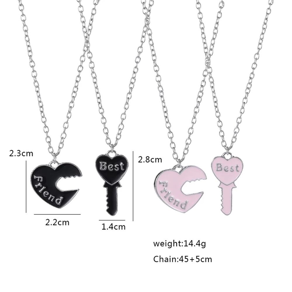 送料無料 ステンレス鋼親友ペンダントネックレス女性調節可能なハート太極拳チェーンキーロック幾何ジュエリーアクセサリー レース アジャスタブル AE335356686136370889