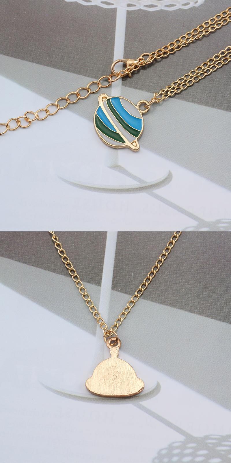 送料無料 Diy トレンディな銀河惑星ネックレス女性ジュエリー漫画エナメルロケット宇宙船地球ネックレスペンダントコリアーギフト レース AE335356611214957848