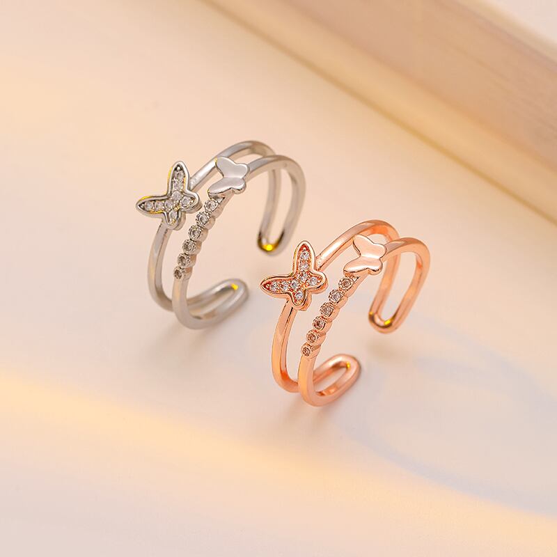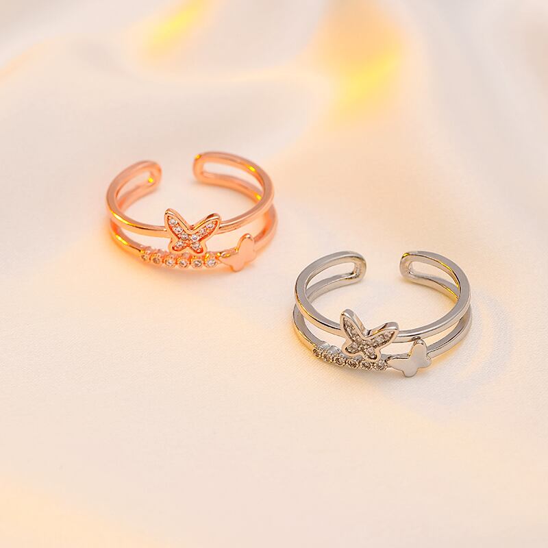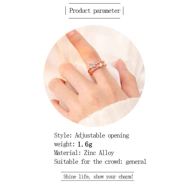 送料無料 高級調節可能な蝶リング女性象嵌ジルコンブリンブリンキュービックジルコニアクリスタルかわいいパーティージュエリーアクセサリーギフト 大人ガーリー スウィート キュート カジュアル アジャスタブル 指輪 風信子石 AE335356679891256784