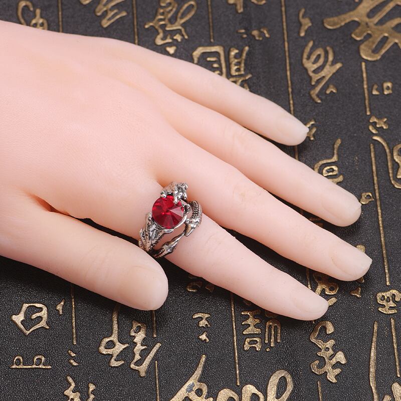 送料無料 クリエイティブイルカレッドラインストーンリング女性男性婚約指輪ジュエリー亜鉛合金開口部調整可能なテールリングパーティーギフト アジャスタブル AE335356655530548769
