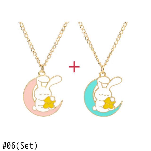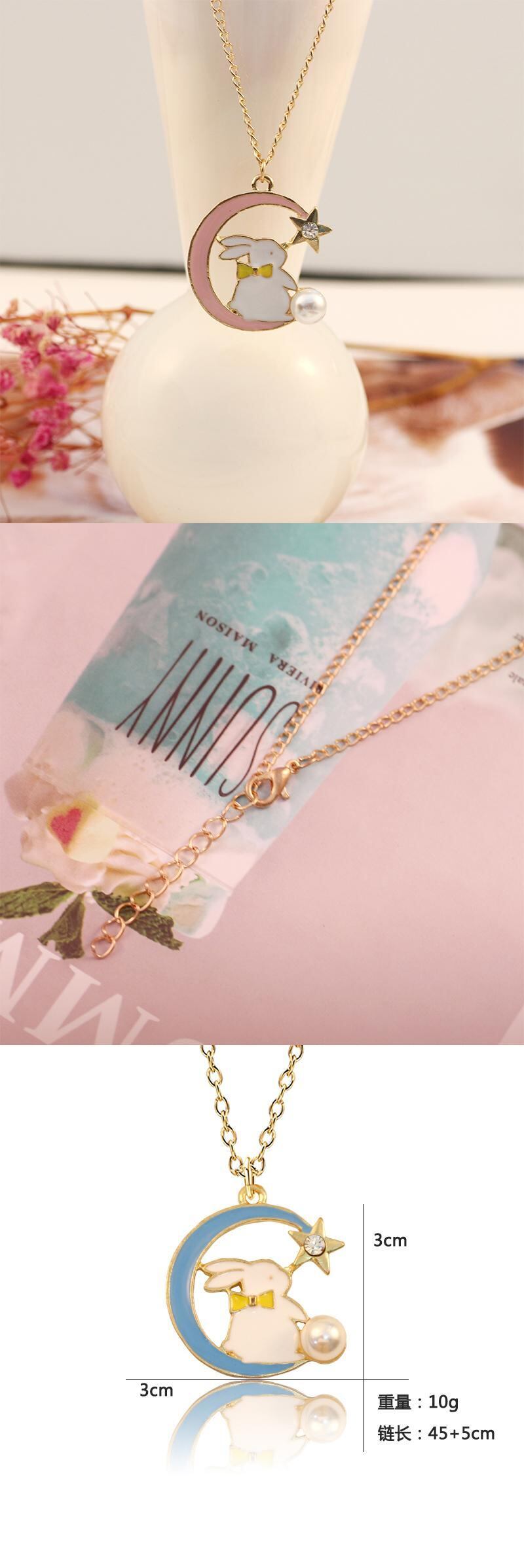 送料無料 DIY ゴールデンエナメル合金ペンダントムーンボウ五芒星パールウサギのペンダントネックレス美少女の誕生日パーティーギフト リボン レース 真珠 AE335356633297737941