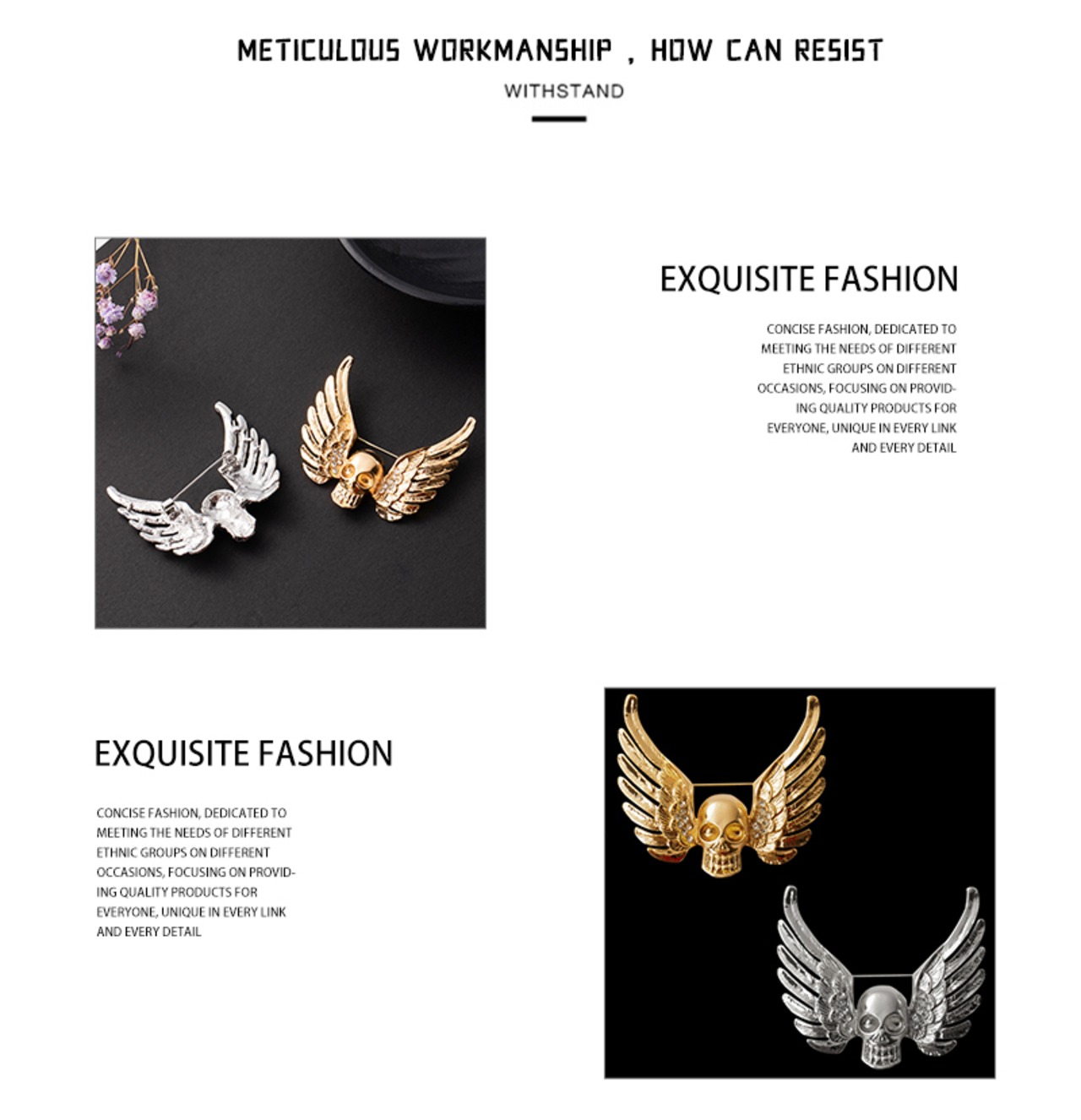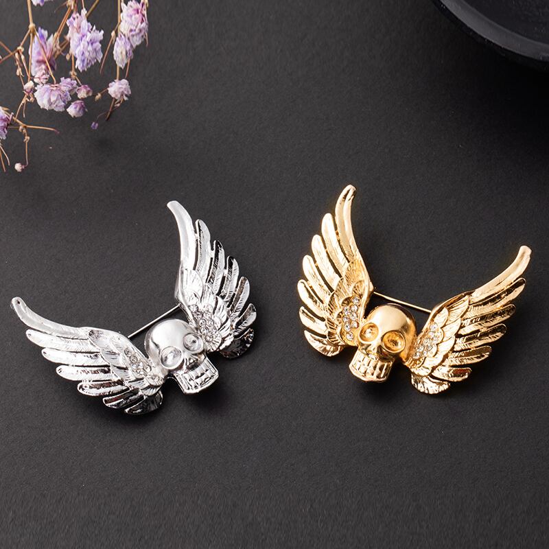 送料無料 パンクスタイルレトロメンズブローチ悪魔の翼スカルラインストーンバッジオプション合金素材パーティージュエリーギフト AE33535661682686065