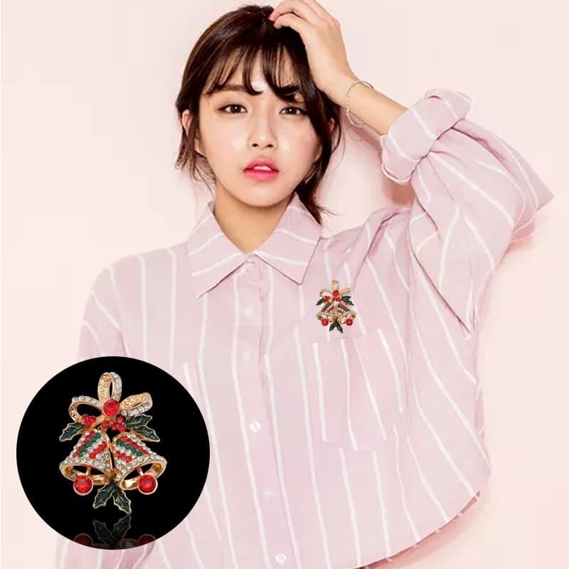 送料無料 クリスマスブローチ女性冬のカラークリスタルエナメルブローチ弓ベルピンジュエリーアクセサリーギフト リボン ウィンター 冬物 AE335356665638279727
