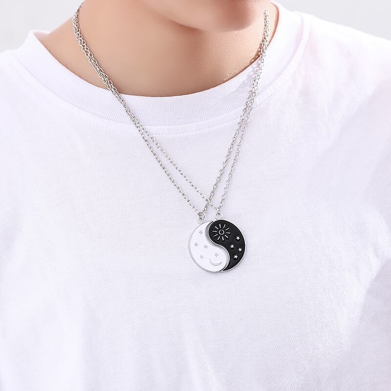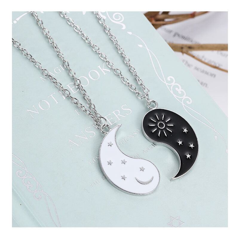 送料無料 ホット陰陽ステッチ日月合金 2 枚の花びら魚座カップルペンダントネックレスジュエリーアクセサリーギフト レース AE335356677462429368