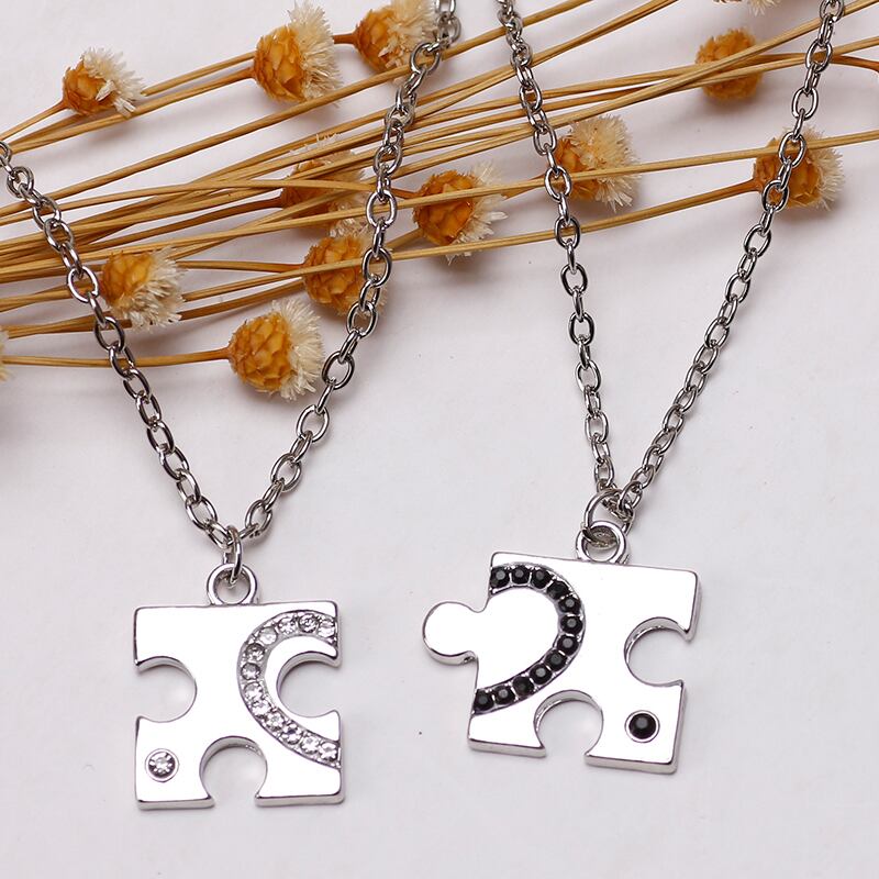 送料無料 2 個セットのカップルネックレススプライシングハートペンダントネックレスチョーカー Gao Li ベストカップルジュエリーギフト レース AE335356660789643724