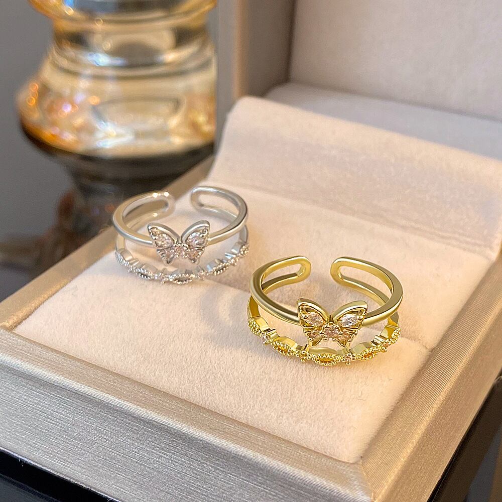 送料無料 可憐な蝶オープニングリング女性中空蝶形調節可能な開口部象眼細工ジルコンリング幾何学ファインジュエリー アジャスタブル 指輪 AE335356635580342302