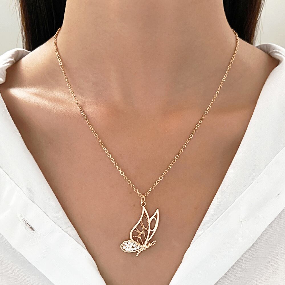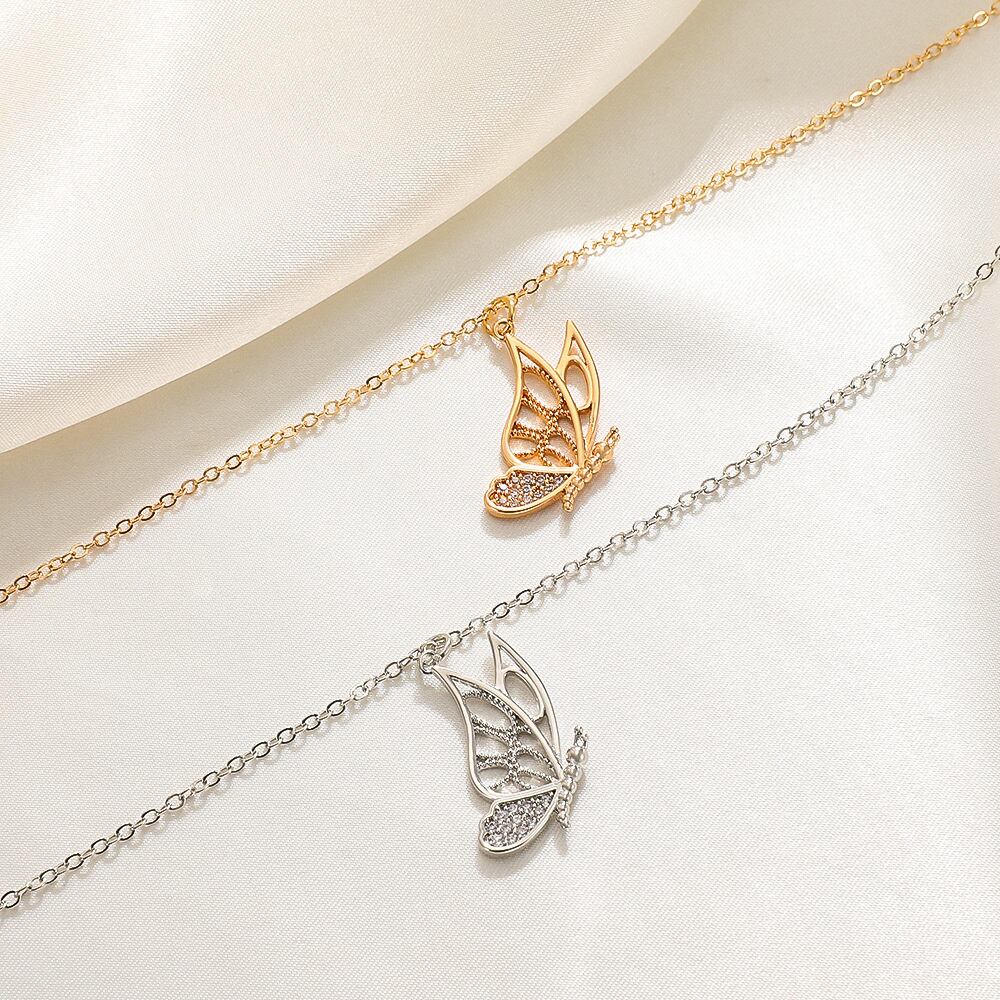 送料無料 上品な中空蝶ネックレス女性動物形ジルコンチョーカーネックレスパーティージュエリーアクセサリーギフト レース AE335356652008134860