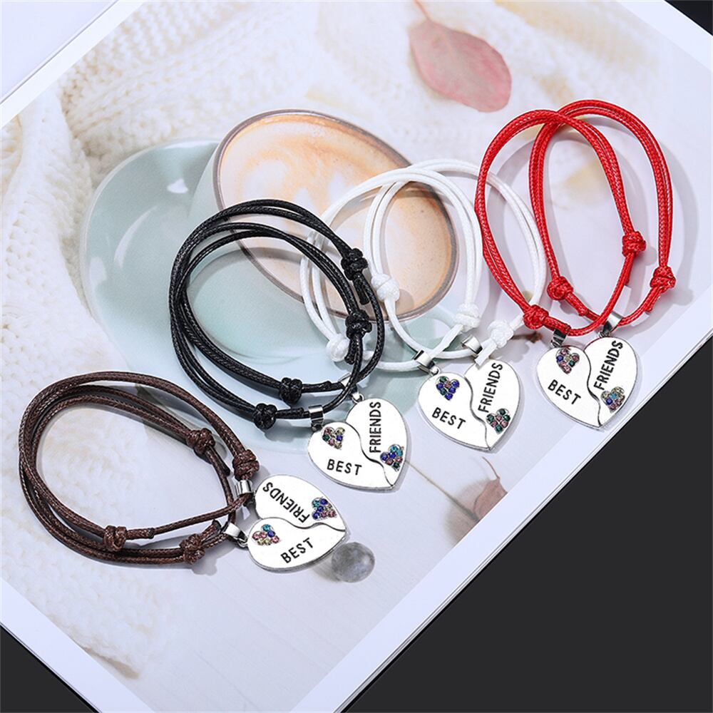 送料無料 2 ピース/セット親友ブレスレット女性女の子中空アウトハート形ペンダントバングル Bff 今までパーティージュエリーアクセサリー AE335356621245867044