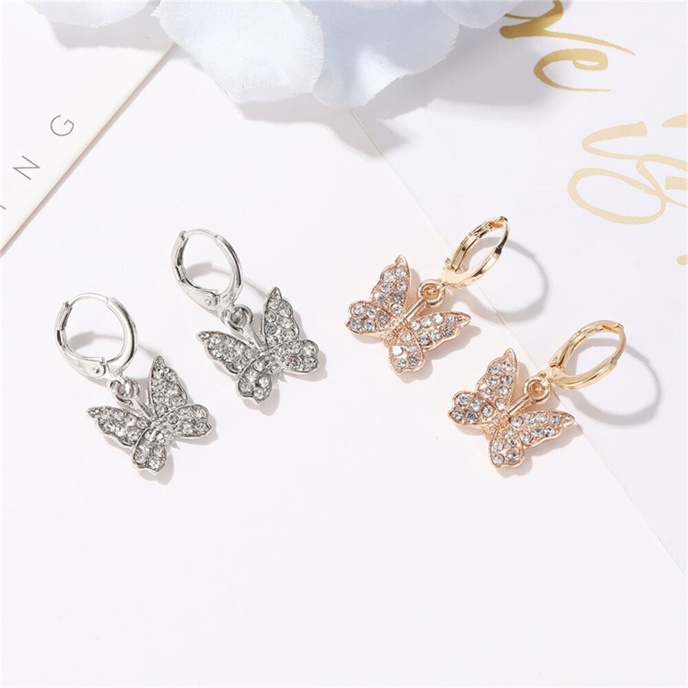 送料無料 繊細な葉蝶スタッドピアス女性花耳スタッドスパークリングジルコンイヤーカフパーティージュエリーアクセサリーギフト イヤリング 指輪 フラワーデザイン AE33535663273556071