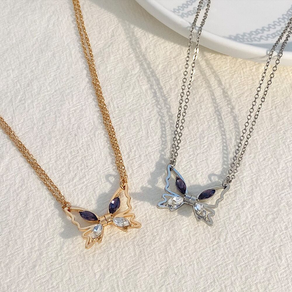送料無料 流行の磁気蝶ネックレス女性磁気象嵌ジルコンペンダントチェーンチョーカー BFF ファインジュエリーアクセサリー レース AE335356678406578232