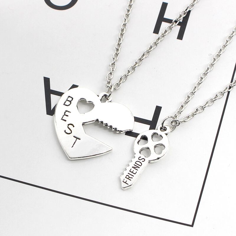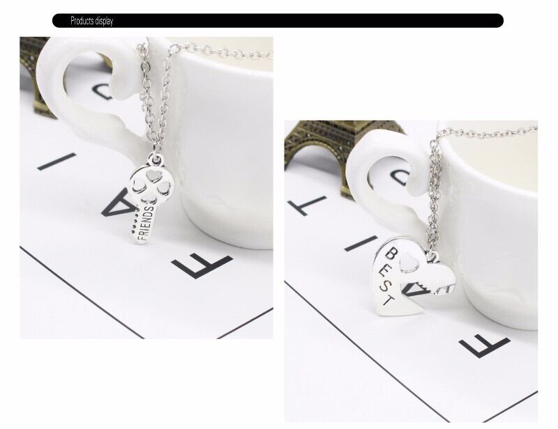 送料無料 ハート親友ネックレス女性 2 ピース/セット中空ハート愛キースプライシング BFF ネックレス & ペンダントジュエリーギフトの首輪 レース AE335356656882394695