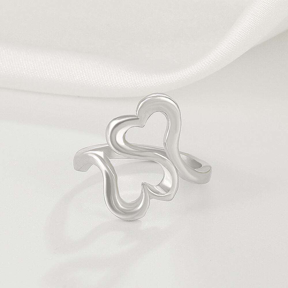 送料無料 不規則な 2 つのハート接続リング女性シンプルな幾何学的なハート型調節可能な指輪パーティージュエリーアクセサリー アジャスタブル AE335356699645454700
