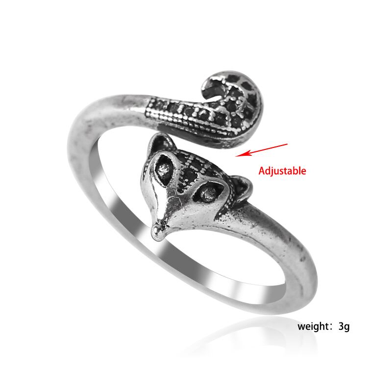 送料無料 ホットレトロ動物キツネリングパンクスタイル調節可能なオープニングリング男性と女性のジュエリーアクセサリークリスマスギフト アジャスタブル 指輪 AE335356614495237601