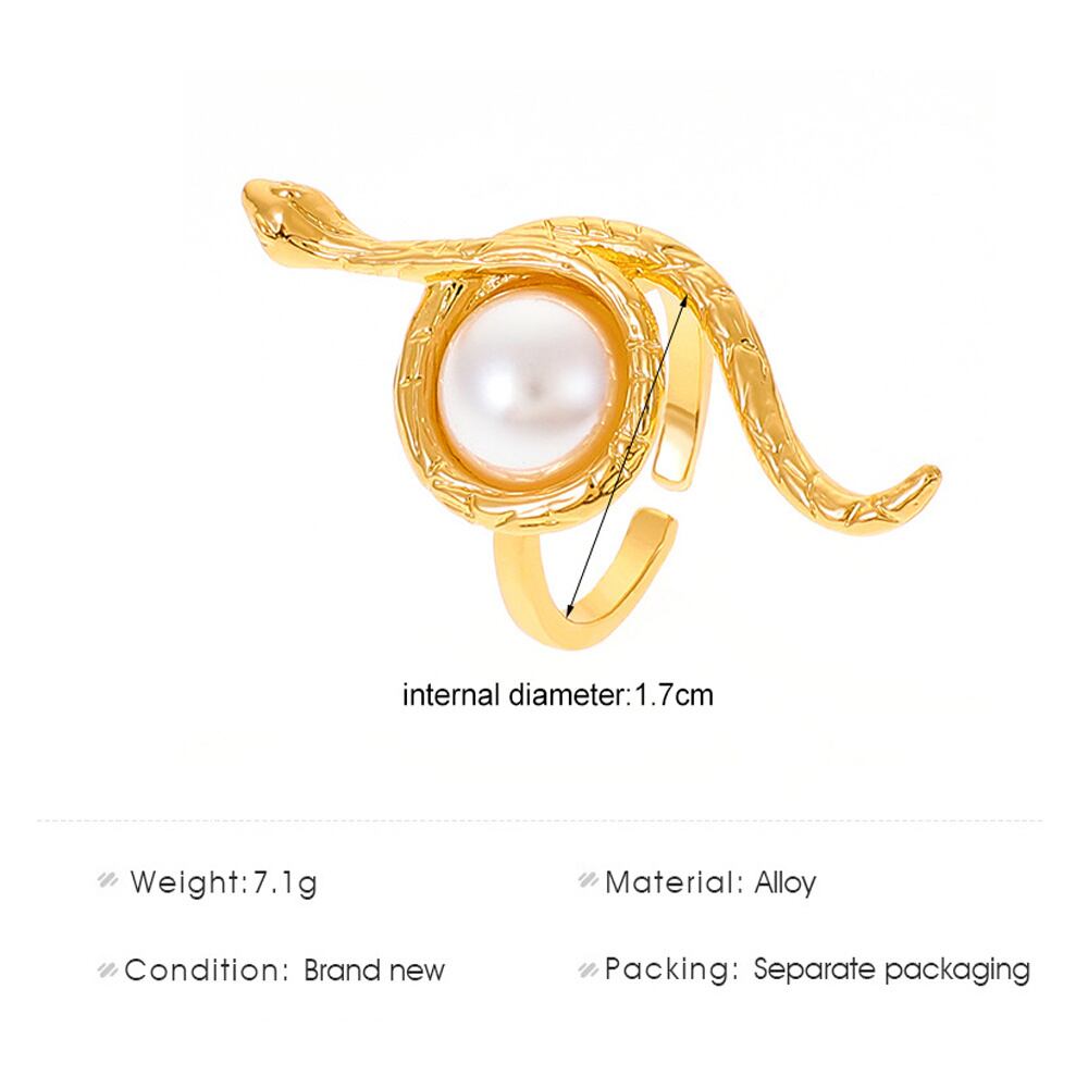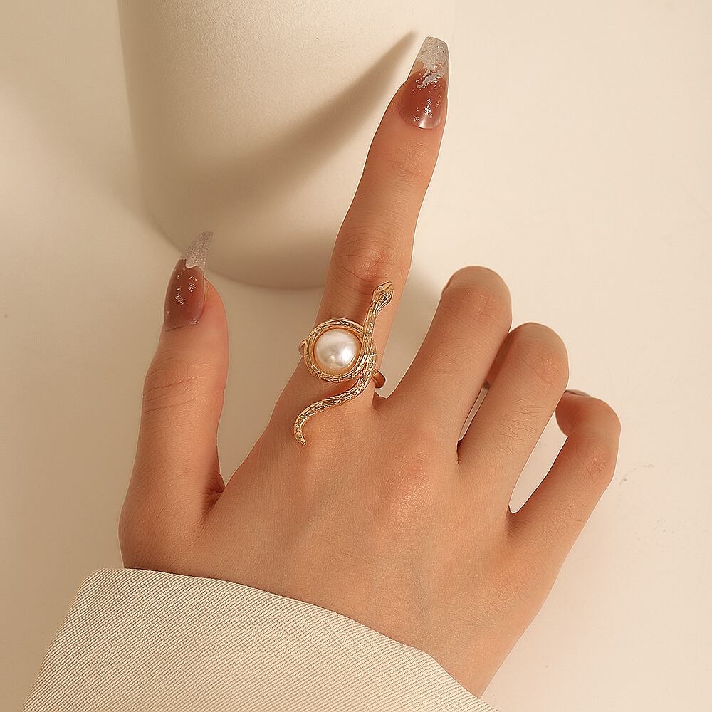 送料無料 パールスネークリング女性調節可能な開口部ヴィンテージパンクヘビ形動物金属リング幾何ジュエリーアクセサリー アジャスタブル 指輪 真珠 ビンテージ AE33535669712821619