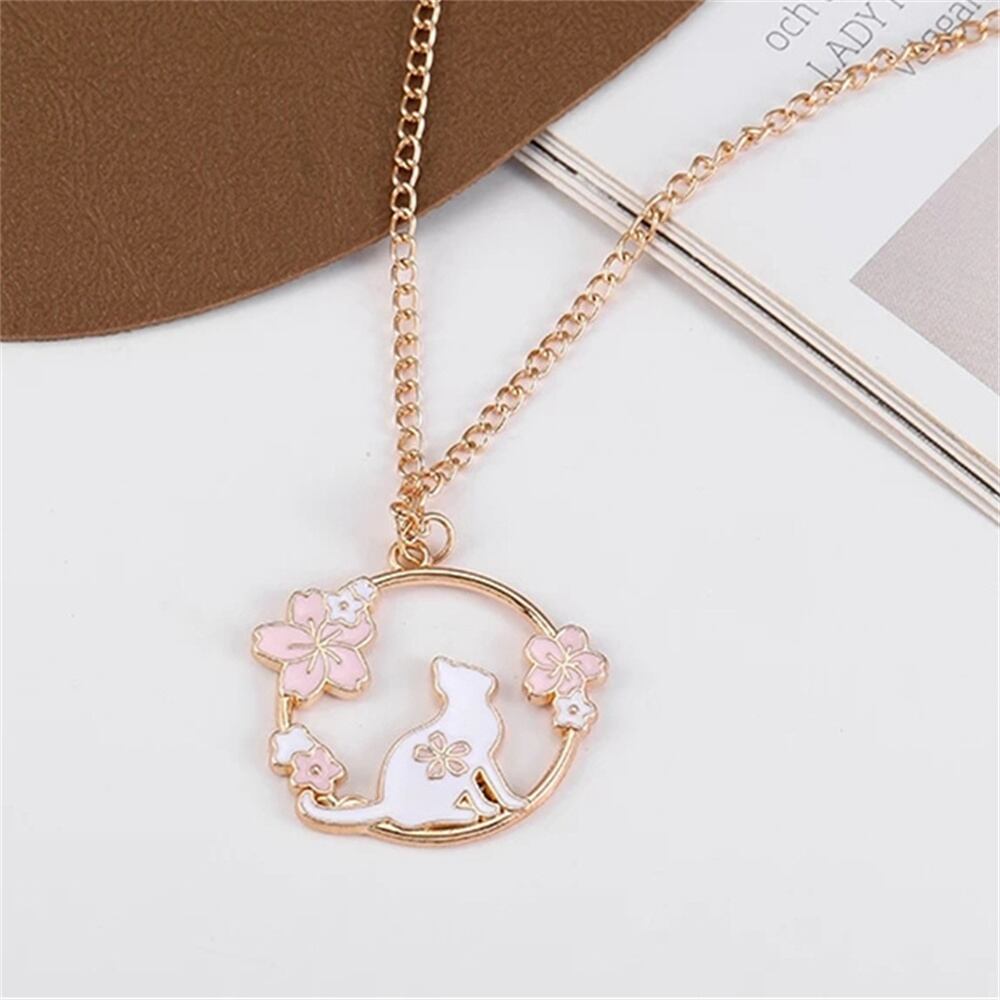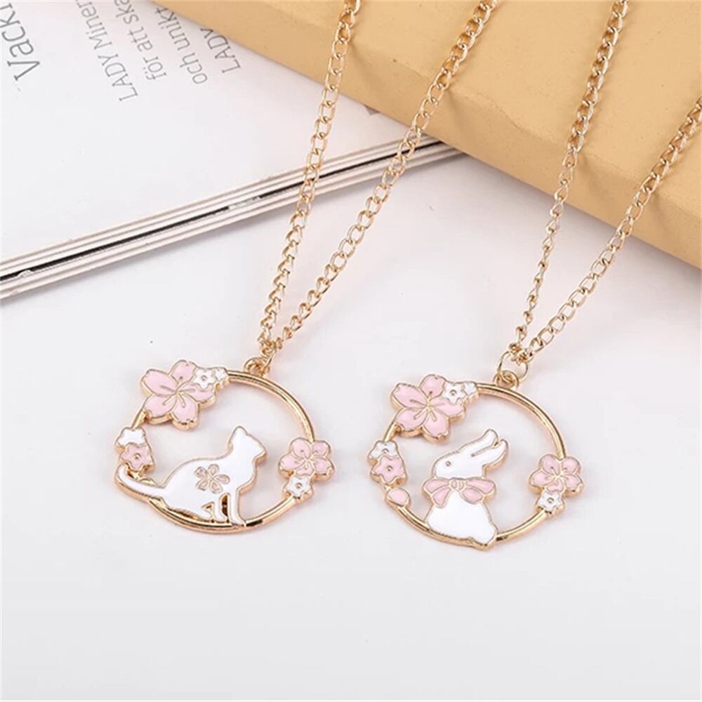 送料無料 かわいいラウンド動物ペンダントネックレス女性絶妙な中空漫画花猫ウサギの首輪パーティージュエリーアクセサリーギフト レース 大人ガーリー スウィート キュート カジュアル フラワーデザイン AE335356675491582353
