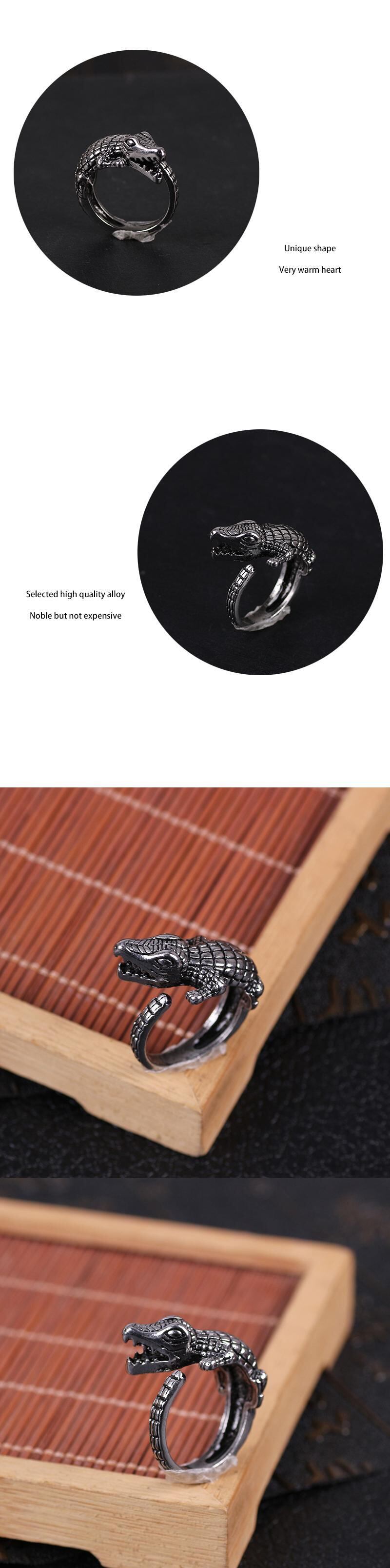 送料無料 2021 最新メンズレトロリング動物黒ワニ調節可能な開口部合金リング人格男性と女性の宝石類のギフト ブラック アジャスタブル 指輪 AE335356698748762647