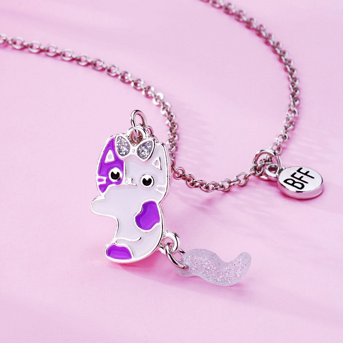 送料無料 2 個かわいい猫磁気ネックレス女性ちょう結び親友猫ちょう結びペンダントチェーン BFF 友情ジュエリーギフト リボン レース 大人ガーリー スウィート キュート カジュアル AE335356662746285777