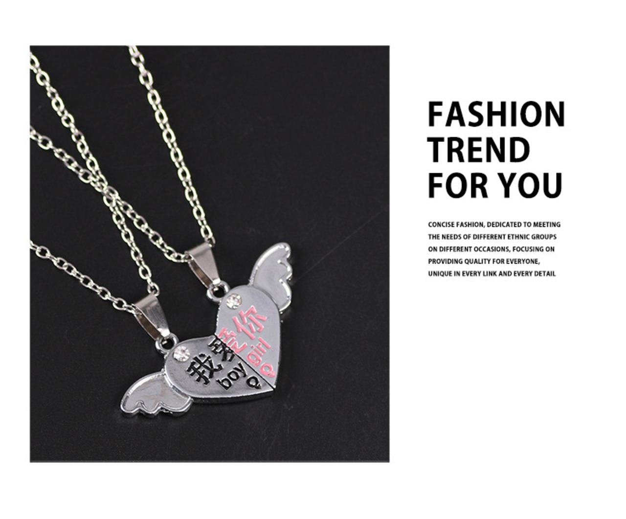 送料無料 恋人のネックレスジュエリー首にギフト親友ペンダント天使の羽ヴィンテージ相互吸着チェーンメタルラインストーン レース ビンテージ AE335356654814569061