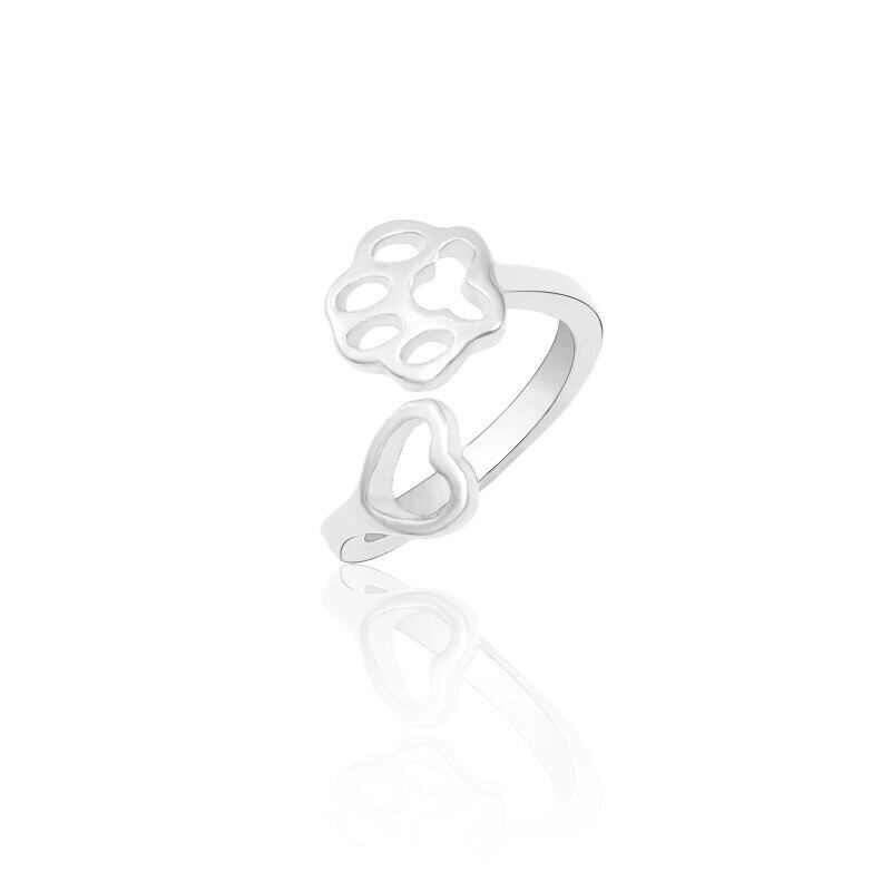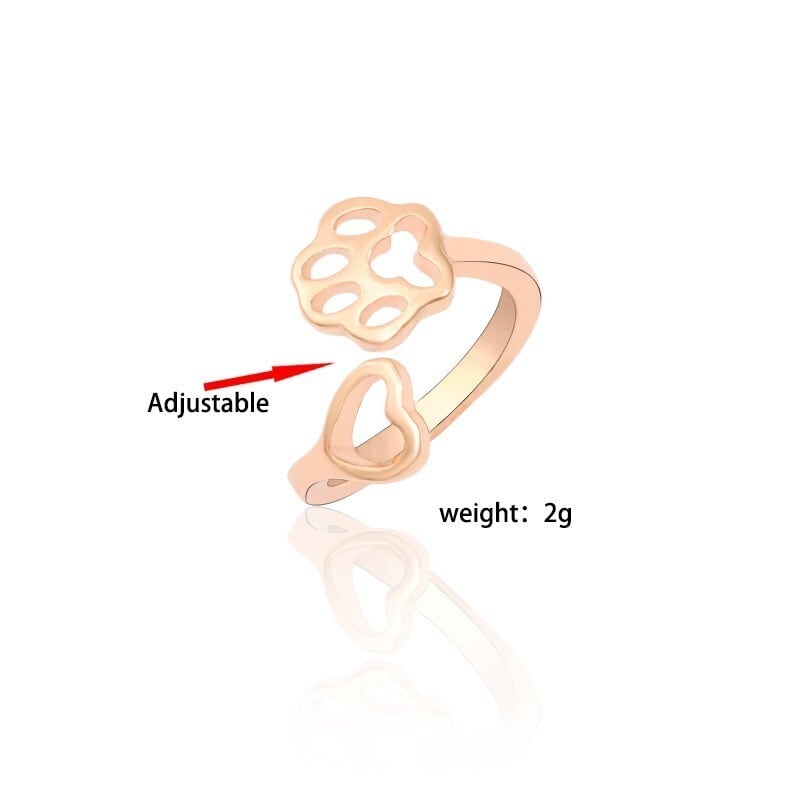 送料無料 動物ペット犬の足跡ラブハートリングジュエリー 4 色金属シンプルな中空猫爪リング女性 Anillos 指輪 AE335356625039603913