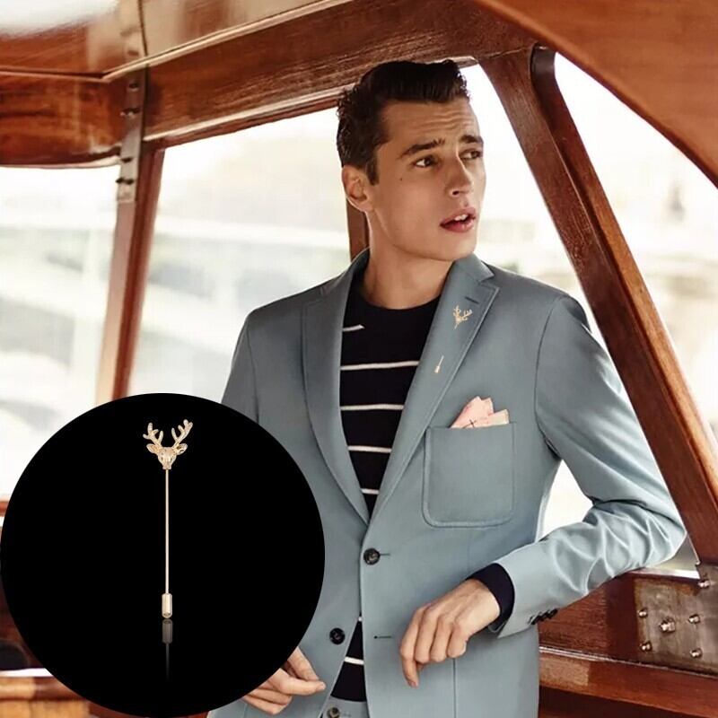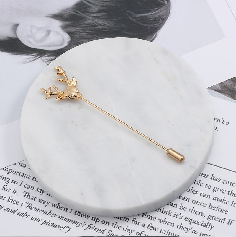 送料無料 トレンディな鹿の頭ヘラジカピンとブローチ女性男性金属動物ブローチジュエリーアクセサリースーツセーターの襟ピン Broches AE335356684227261030