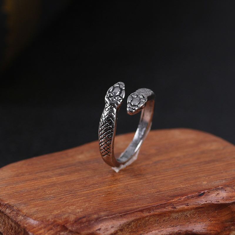 送料無料 人格メンズレトロリング調節可能な開口部合金動物黒双頭ヘビリング男性と女性のジュエリーギフト 2020 ブラック アジャスタブル 指輪 AE335356680789007102
