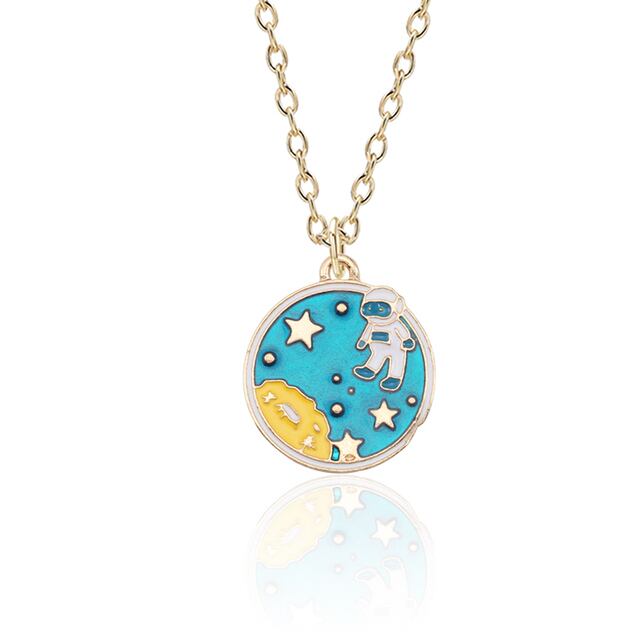 送料無料 トレンディなブループラネットネックレス地球宇宙飛行士ペンダントネックレス女性ユニセックスジュエリーチェーンクリエイティブ記念品 レース AE335356625042339351