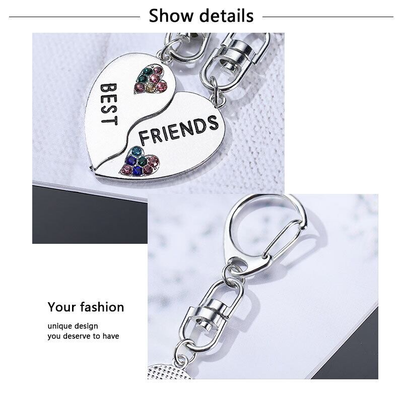 送料無料 車のキーチェーンチェーン男性ギフトスプライシングパーソナライズされたキーホルダーカラフルなラインストーン親友学生ペンダント 2 ピースセット愛 AE335356693934505858