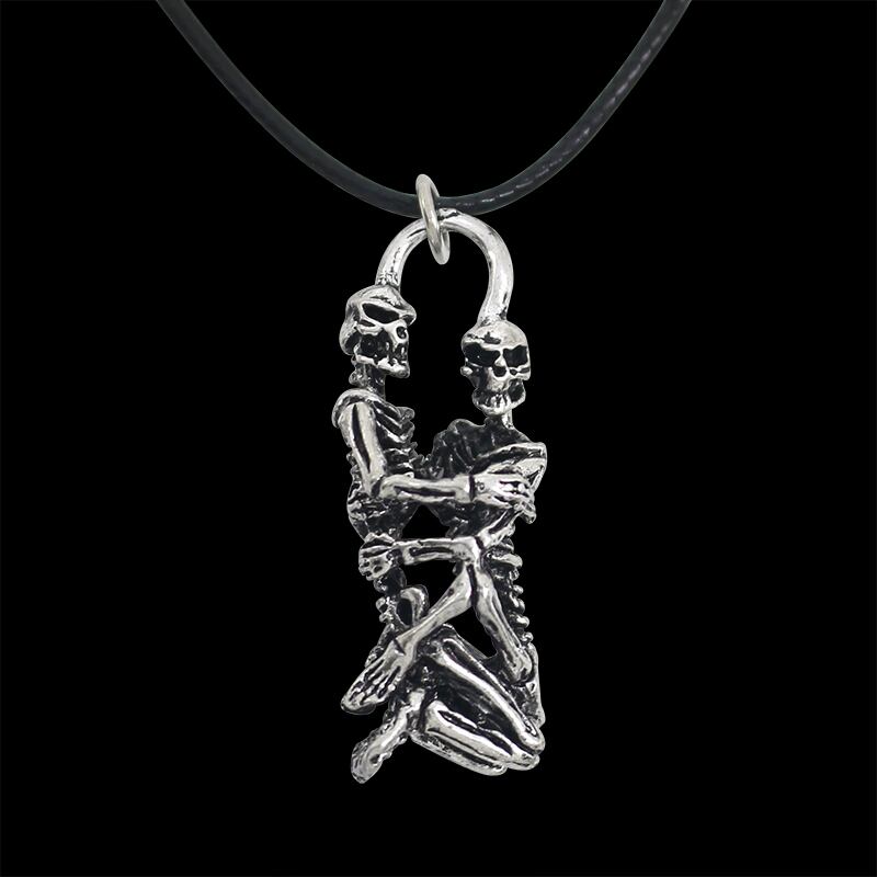 送料無料 ヴィンテージパンクスケルトンネックレスアンティークカップルスカルハグペンダントネックレスレザーロープチェーンネックレス愛好家コラール レース ビンテージ AE33535663297663899